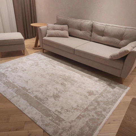 - Минимализм: Для минималистичного интерьера подойдут однотонные ковры в нейтральных тонах (белый, серый, черный) или ковры с лаконичным геометрическим рисунком.