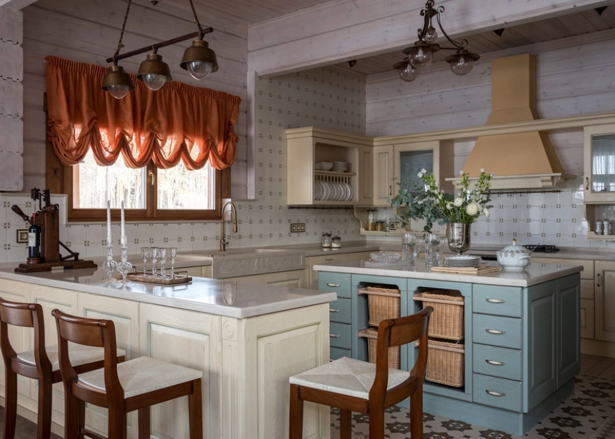 Кантри‑шторы хорошо работают с элементами дерева: потолочные балки, мебель в натуральном дереве, плетёные изделия. Комбинируйте с текстилем в клетку и цветами — подушками, скатертями или декоративными чехлами. Светлые оттенки визуально расширяют пространство, а тёмные акценты добавляют тепла. В спальне мебель в стиле прованс, кухонные панели и светлая кафельная плитка создают уютный сценарий, где шторы становятся центральным элементом мягкого зонирования.