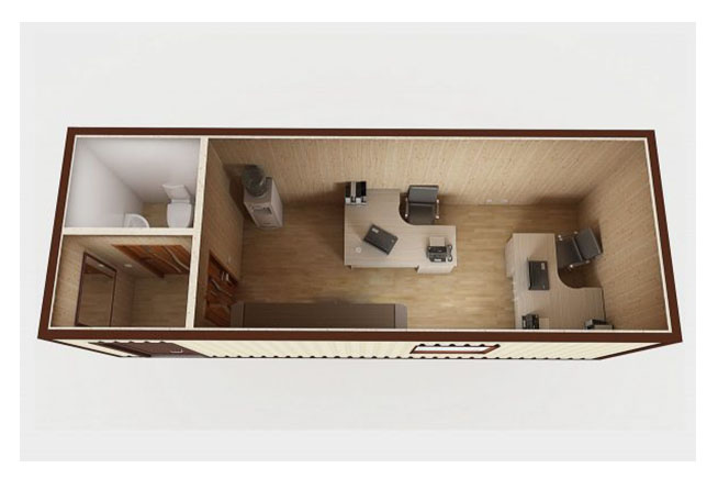 Стандартные модули обычно варьируются по длине и ширине: 6×2,4 м (20‑футовый), 3×6 м и их комбинации. Пространство можно конфигурировать как открытое офисное помещение, так и набор отдельных кабинетов, переговорной зоны, кухни и санузла. Несколько модулей можно соединять в единый комплекс, образуя многофункциональные комплексы. Инженерные сети можно автономно размещать внутри модулей или прокладывать по крышам для упрощения монтажа на объекте.